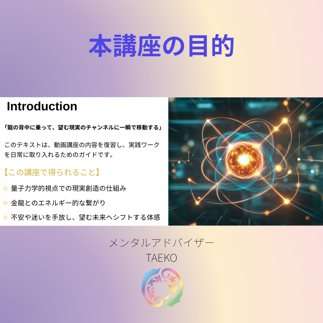 努力やアファメーションで現実が変わらないのは、「能力」ではなく、「不足感」の周波数を出し続けているためかもしれません 。この講座は、量子力学的視点 に基づき、あなたの内側の周波数を切り替えて、望む現実のチャンネルへ一瞬で移動するためのガイドです 。